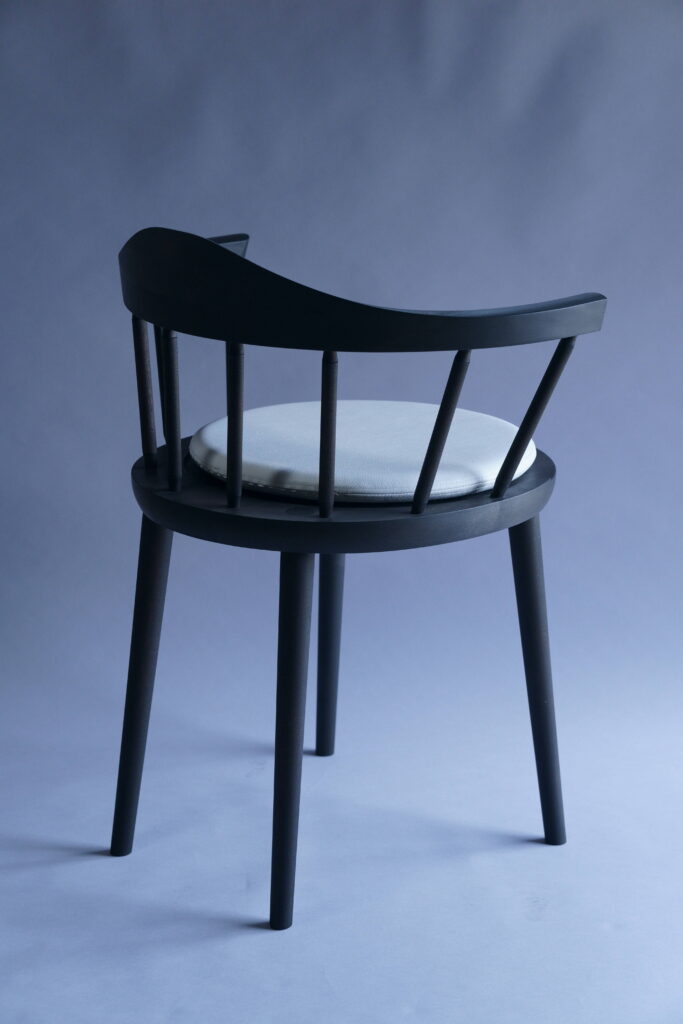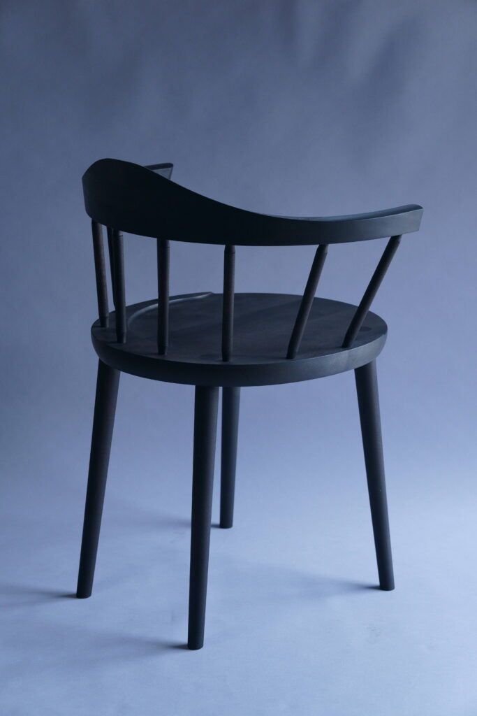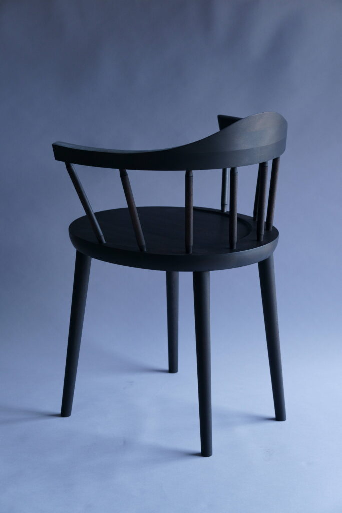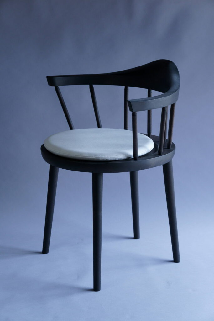 特注椅子をミズメザクラで、黒色塗装した仕様。