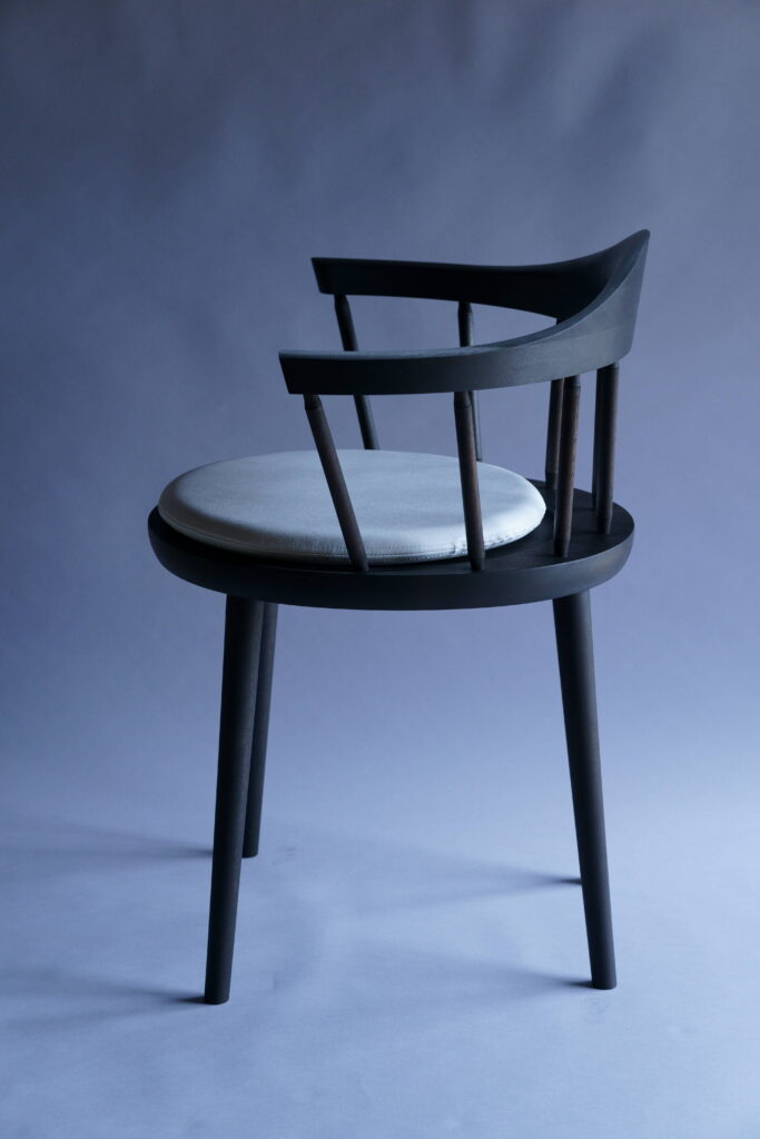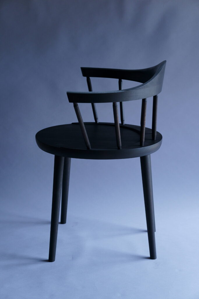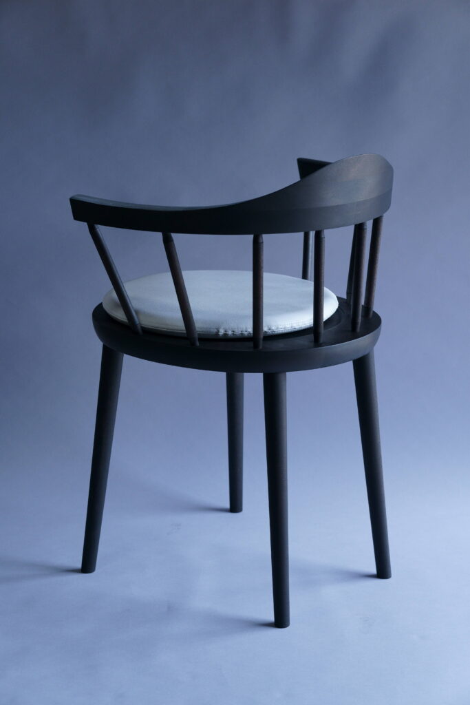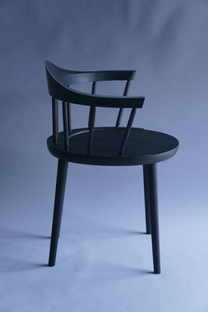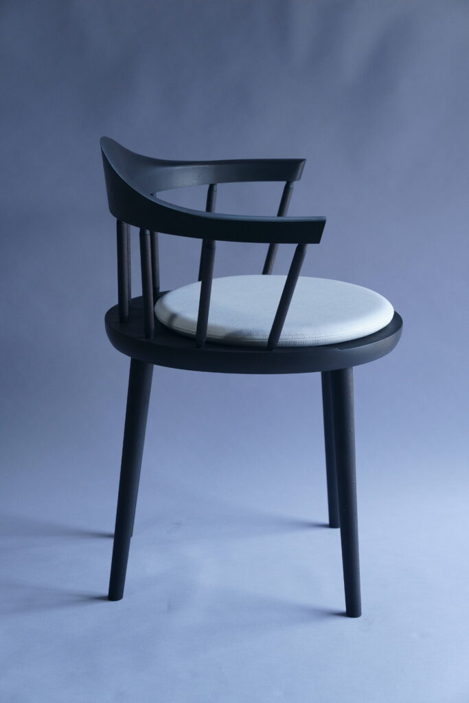 特注椅子をミズメザクラで、黒色塗装した仕様。